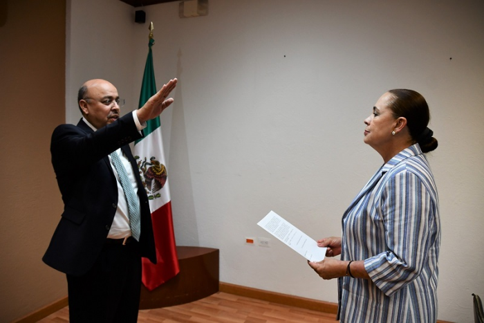 Chihuahua, Chih.- En representación de la Gobernadora Maru Campos, la secretaria de Educación y Deporte, Sandra Elena Gutiérrez Fierro, tomó protesta a Eloy García Tarín, como titular de la Dirección General del Colegio de Educación Profesional Técnica del Estado de Chihuahua (CONALEP).