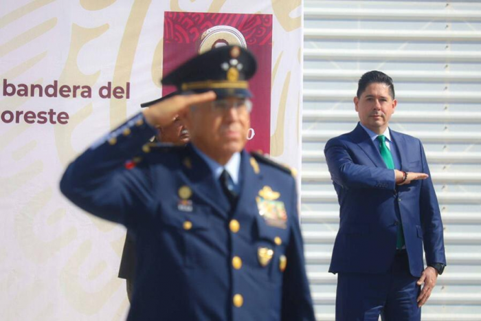 Chihuahua, Chih.- El Secretario de la Coordinación de Gabinete, Luis Serrato Castell con la presencia de autoridades civiles y militares, acudió en representación de la gobernadora Maru Campos a la toma de protesta al General de División Piloto Aviador Alfonso Rodríguez Sierra, como comandante interino de la Región Aérea Noreste.