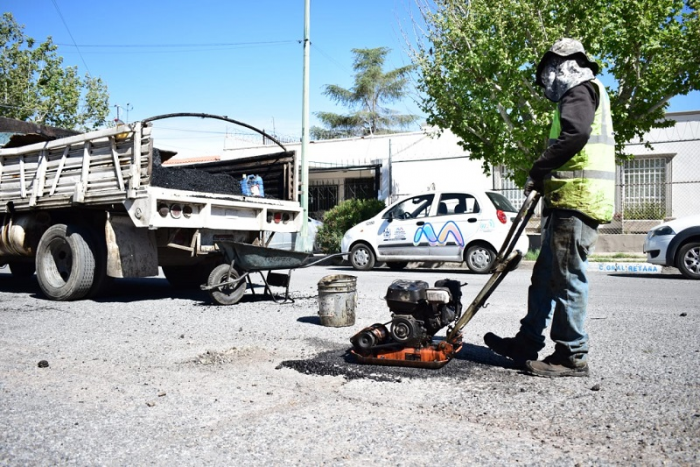 Por un tránsito seguro, se trabaja con bacheo en la Capital