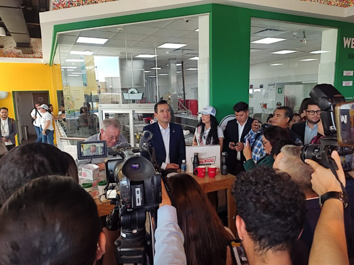 El alcalde Marco Bonilla estuvo en la inauguración de la primera sucursal de Krispy Kreme en Distrito Uno y sería alrededor del medio día.