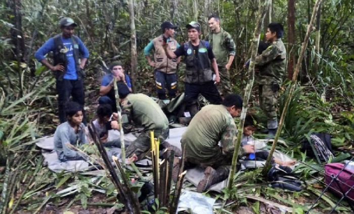Lesly (13 años), Soleiny (9), Tien Noriel (5) y Cristin (1) fueron encontrados vivos el viernes en medio de la selva amazónica del sur del país y a 5 km del lugar del accidente, en el que fallecieron tres tripulantes adultos.