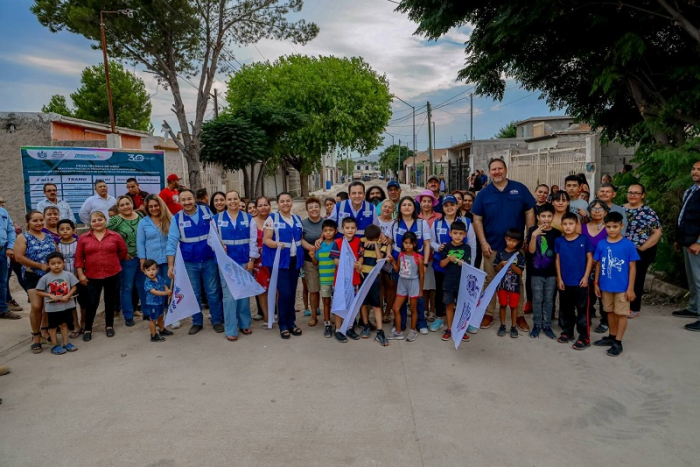 Chihuahua, Chih.- El alcalde de Chihuahua, Marco Bonilla, dio banderazo de arranque para la pavimentación de calles de la colonia Jardines de Sacramento, labores que son parte del Presupuesto Participativo 2023.