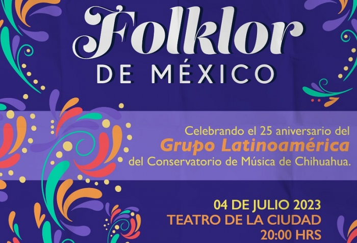 Chihuahua, Chih.- El Gobierno Municipal que encabeza el alcalde Marco Bonilla, a través del Instituto de Cultura del Municipio y su Conservatorio de Música, invita a la ciudadanía a asistir este próximo martes 4 de julio al concierto “Folklor de México” que se llevará a cabo en el Teatro de la Ciudad. Este evento tiene como finalidad recaudar fondos para mejorar las instalaciones del propio Conservatorio de Música.
