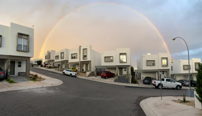 Chihuahua, Chih.- Las lluvias que se registraron durante la tarde noche de hoy dejaron diferentes paisajes en toda la ciudad de Chihuahua.Varios chihuahuenses salieron de sus viviendas a fotografiar la arcoiris que se pudo observar en prácticamente en toda la ciudad.