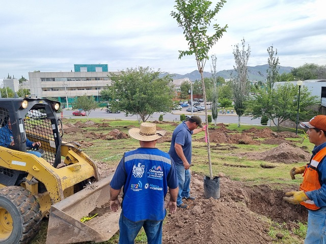 Chihuahua.- Para mejorar la calidad de vida de las y los Chihuahuenses, el Gobierno Municipal, a través de la Dirección de Mantenimiento Urbano, plantó en el año 2022, más de 7 mil 500 árboles, plantas y pinos de diversas especies en distintas vialidades y parques de Chihuahua Capital.