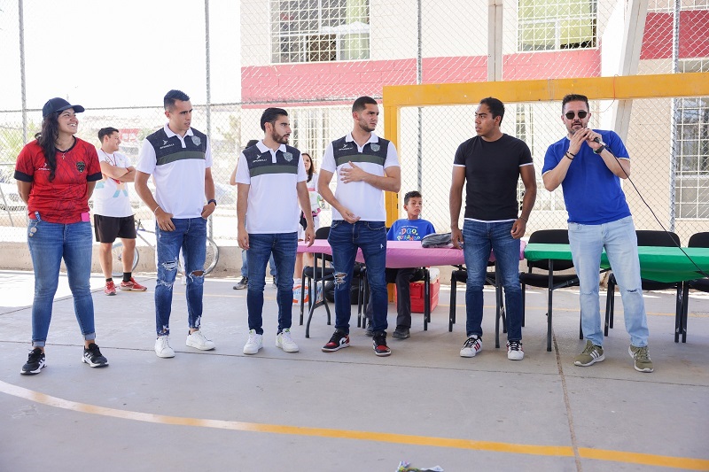 Ciudad Juárez, Chih.- Jugadores y jugadoras del equipo Bravos llevaron momentos de alegría a decenas de chiquitines en uno de los centros de Atención Social y Educativo para las Familias (CASEF) que opera el Sistema para el Desarrollo Integral de la Familia de Juárez, (DIF).
