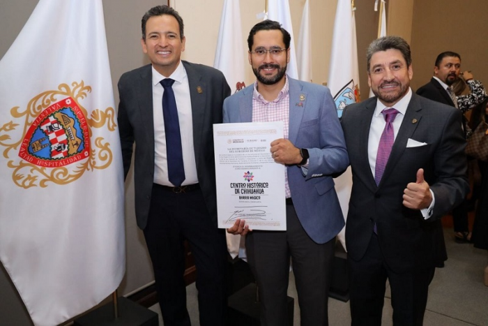 Chihuahua, Chih.- El Centro Histórico de Chihuahua Capital obtuvo un nombramiento como "Barrio Mágico" por parte de la Secretaría de Turismo (SECTUR) del Gobierno Federal, en donde el alcalde Marco Bonilla recibió este nombramiento en representación de todos los chihuahuenses a manos de la gobernadora Maru Campos.