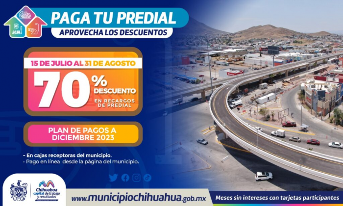 El funcionario explicó que actualmente el Municipio ha puesto en marcha el programa de 70% de descuento en recargos del impuesto predial, mismo que estará disponible hasta el 31 de agosto.