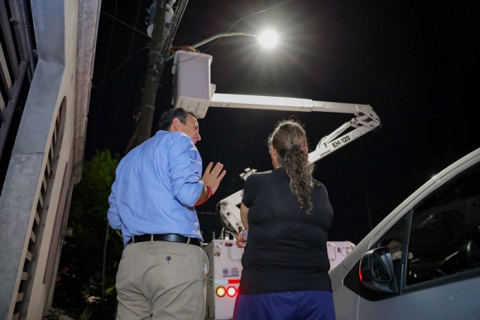 Para verificar el funcionamiento de las nuevas lámparas LED que se están instalando en la ciudad, Marco Bonilla, acompañado del director de la Policía Municipal Julio Salas y la directora de Desarrollo Humano Mónica Herrera, tocaron las puertas de domicilios de Villa Juárez, para conocer la opinión de los vecinos en temas de seguridad, servicios públicos y alumbrado.