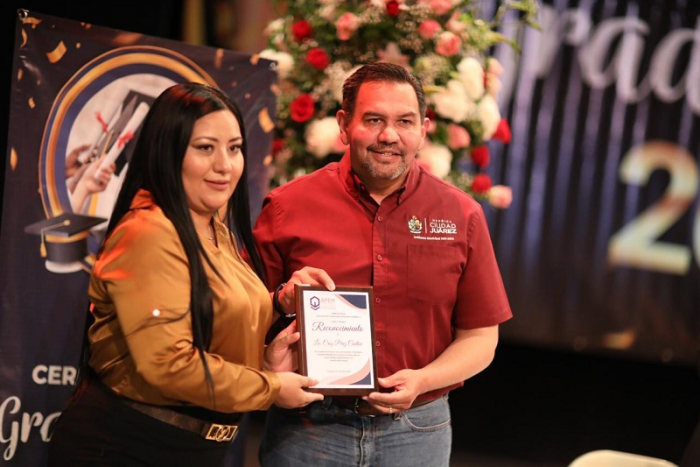 Ciudad Juárez, Chih.- El Presidente Municipal, Cruz Pérez Cuéllar, felicitó a los 200 estudiantes que culminaron sus estudios de nivel preescolar hasta posgrados con el apoyo de la Asociación de Profesionistas y Empresarios de México (APEM).
