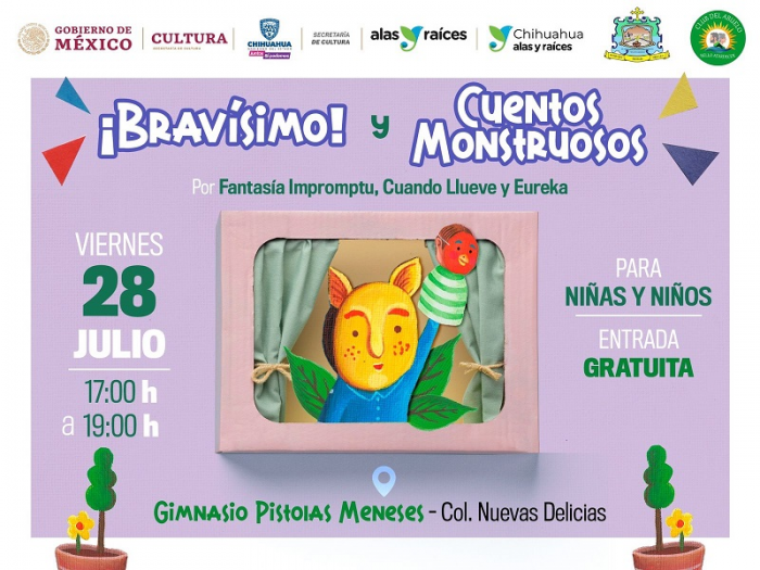 Chihuahua, Chih.- Con el objetivo de fomentar los derechos culturales de la niñez, la Secretaría de Cultura a través del programa Alas y Raíces, invita a la ciudadanía en general a la presentación de espectáculos de títeres, en el Seccional de El Sauz, municipio de Chihuahua.