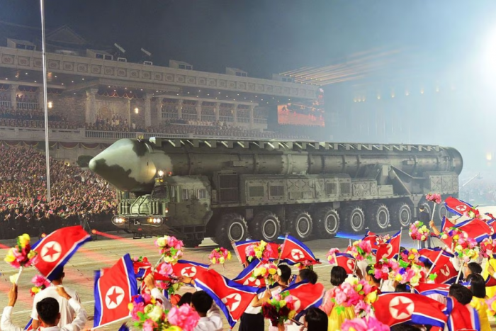 Líder norcoreano supervisa desfile militar con drones y misil balístico intercontinental