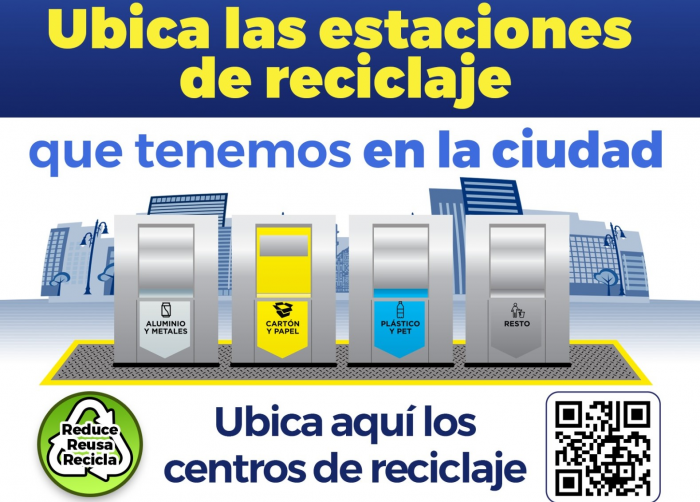 Chihuahua, Chih.- El Gobierno Municipal, a través de la Dirección de Servicios Públicos Municipales, pone a disposición de la ciudadanía 14 estaciones de reciclaje en las cuales podrás separar los residuos de tu hogar en cuatro contenedores para plástico y pet, cartón y papel, aluminio y metales, y uno más para el resto de los desperdicios que no sean orgánicos.