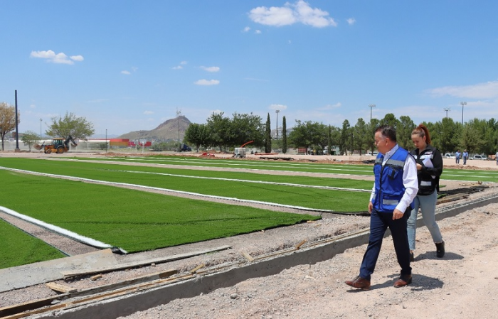 Chihuahua, Chih.- Al realizar un recorrido por las obras de rehabilitación de la Deportiva Sur de la ciudad de Chihuahua, el secretario de Comunicaciones y Obras Públicas, Mario Vázquez, afirmó que una vez concluidas: “Vamos a entregar espacios dignos para las familias chihuahuenses”.