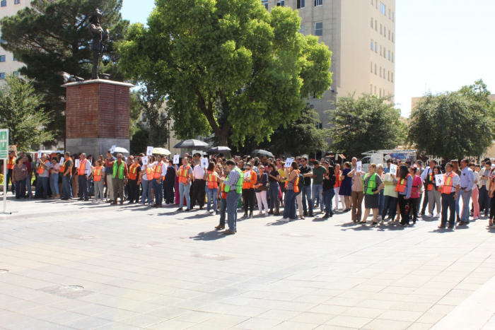 Chihuahua, Chih.- La Coordinación Estatal de Protección Civil (CEPC) evaluó el simulacro de incendio que se realizó este día en el Congreso del Estado, que fue uno de los 21 edificios en los cualesse efectuaron ejercicios similares.