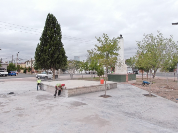 Chihuahua, Chih.- A días de concluir la rehabilitación de la tradicional Plaza-Glorieta Industrial, que se ubica en la avenida Hidalgo en la colonia La Junta, el Gobierno Municipal, a través de la Dirección de Obras Públicas, trabaja en los últimos detalles de esta obra que forma parte de los proyectos ganadores del Presupuesto Participativo 2023.