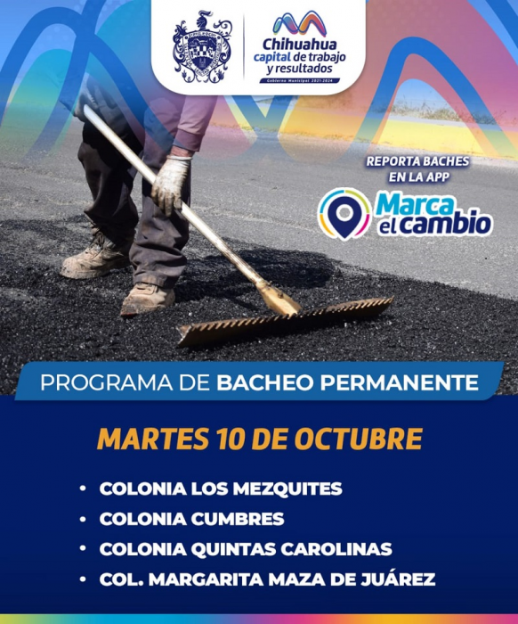 Además, se pide a la ciudadanía a realizar su reporte de bache marcando al 072 en el Centro de Respuesta Ciudadana (CRC), o en la aplicación Marca el Cambio totalmente gratuita en cualquier plataforma como Android e iOS.