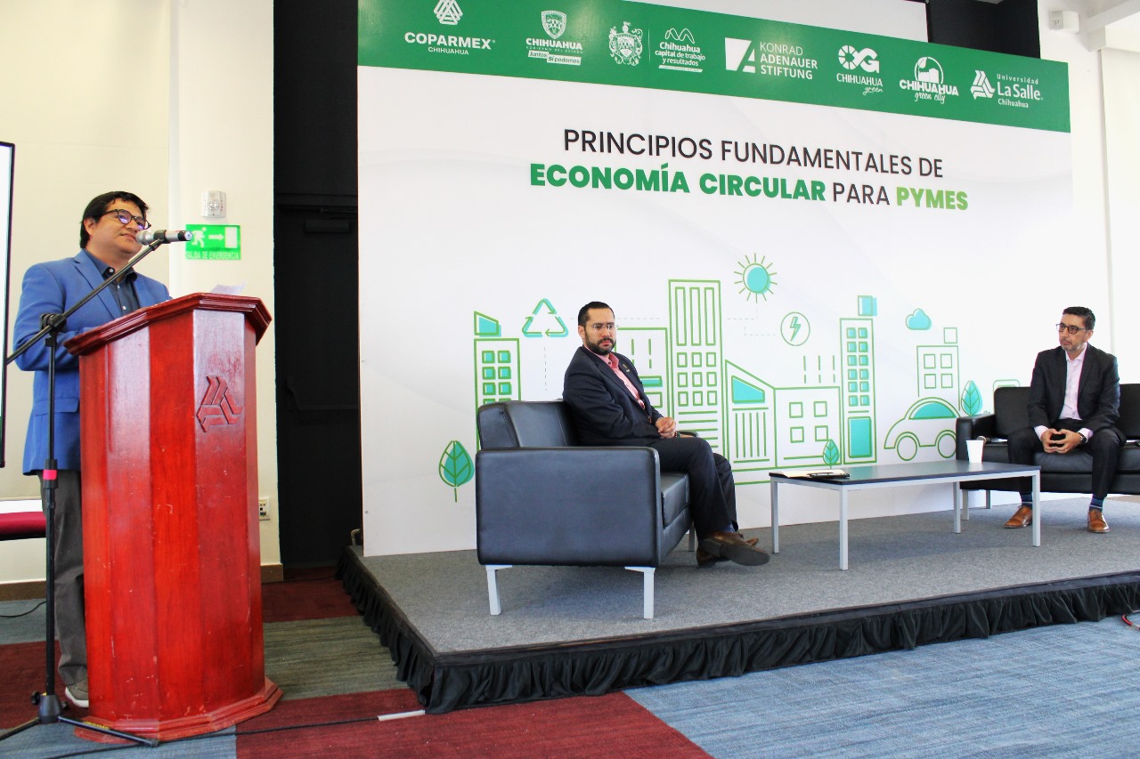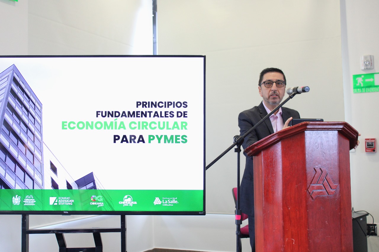 Por FELAChihuahua, Chih.- Pequeñas y medianas empresas de la ciudad de Chihuahua recibieron información y herramientas trascendentales para su fortalecimiento y desarrollo, mediante el foro “Principios Fundamentales de Economía Circular para PyMes”, realizado en las instalaciones de la Universidad La Salle Chihuahua.