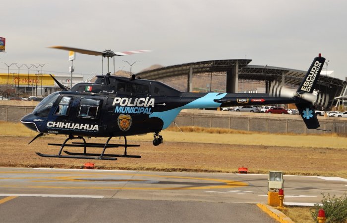 Chihuahua, Chih.- A fin de brindar mayor seguridad a los chihuahuenses tanto de manera terrestre como aérea, desde el Gobierno Municipal cuenta con el helicóptero Halcón I, una herramienta tecnológica que ha resultado sumamente útil para la vigilancia preventiva, realización de rescates aeromédicos y la búsqueda de personas en zonas de difícil acceso.