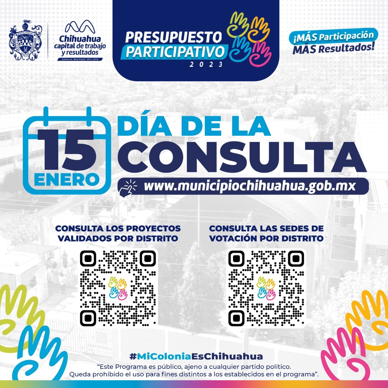 Finalmente, se informa a la ciudadanía que en la consulta pueden votar niños, adolescentes, jóvenes y adultos, pues la finalidad del Presupuesto Participativo es involucrar a todos los chihuahuenses en la transformación de la ciudad.