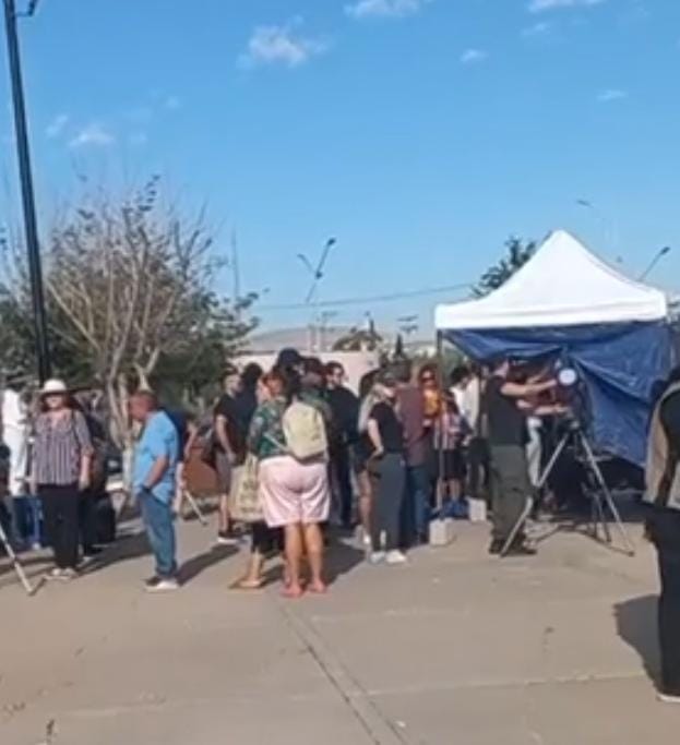 Por FELAChihuahua, Chih.- Ciudadanos emocionados por ver el Eclipse Solar Anular 2023, acudieron a El Palomar para poder observar el fenómeno natural que empezó desde las 9:00 de la mañana.