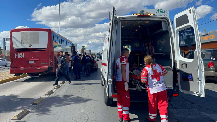 Chihuahua, Chih.- Esta tarde un joven fue atropellado por un camión del Bowi el cual le generó varios golpes en diferentes partes del cuerpo, esto en la avenida Tecnológico a la altura de la calle Paracaidistas.Al ser impactado por la unidad de la Ruta Troncal el joven salió proyectado hacia otro automóvil Honda donde terminó con algunas contusiones, al lugar arribaron paramédicos de Cruz Roja quienes lo trasladaron a un hospital.