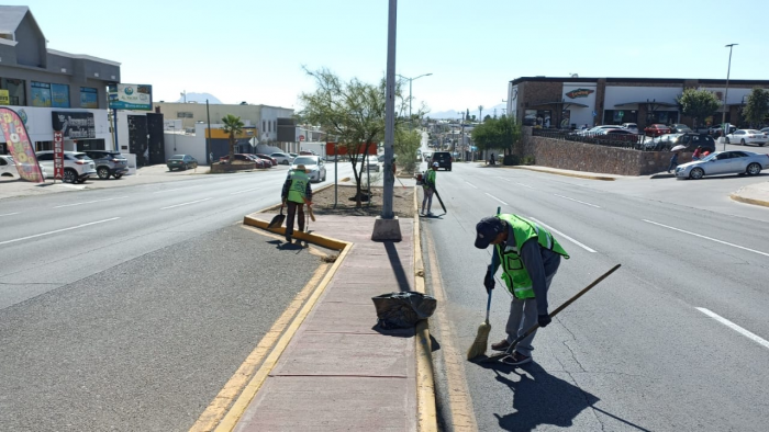 Chihuahua, Chih.- Con la intención de conservar siempre la buena imagen urbana, el Gobierno Municipal, a través de las direcciones de Mantenimiento Urbano y Servicios Públicos, realizó durante el mes de octubre trabajos de limpieza en diversas vialidades del norte y sur de Chihuahua Capital.