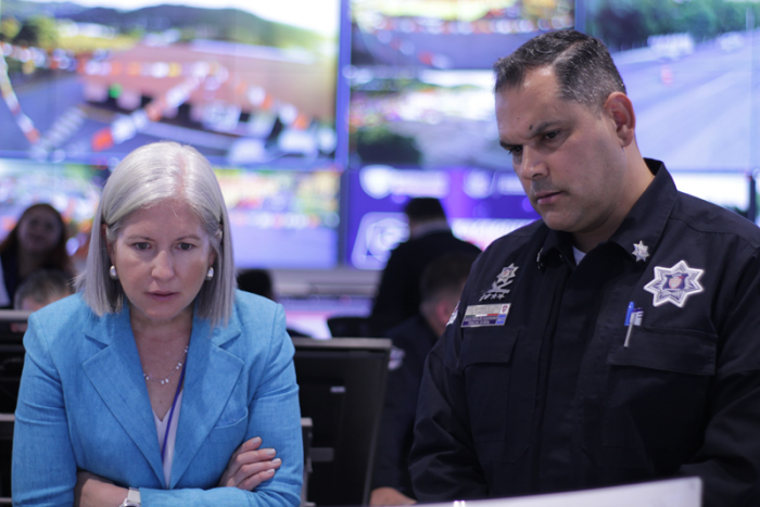 Ciudad Juárez.- La Cónsul General de Canadá, Sandra Shaddick, visitó las instalaciones del Centro de Control, Comando, Cómputo y Comunicaciones (C7-iA) de Ciudad Juárez, donde se reunió con el secretario de Seguridad Pública del Estado, Gilberto Loya, para discutir sobre la estrategia de seguridad Centinela que opera en todo el estado.