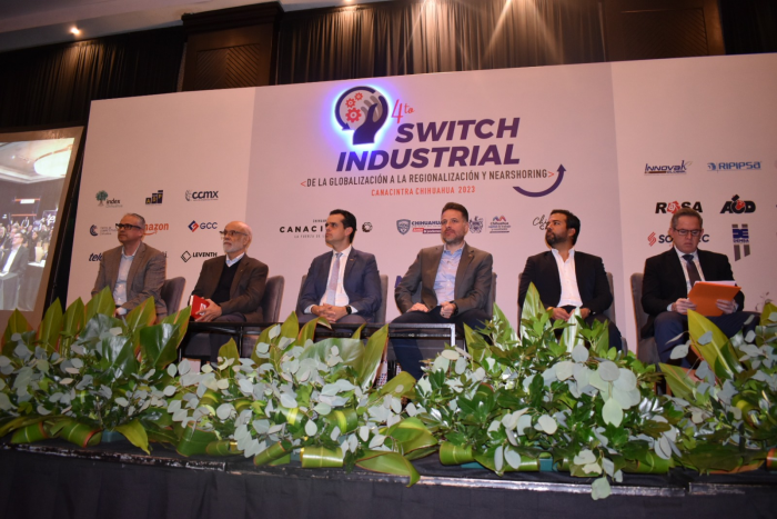 Chihuahua, Chih.- Para el alcalde Marco Bonilla el desarrollo industrial de Chihuahua Capital es de suma importancia, es por ello que el pasado 22 de noviembre, el Gobierno Municipal colaboró con el “Switch Industrial”, un evento organizado por la Cámara Nacional de la Industria de la Transformación (CANACINTRA) en Chihuahua.En este espacio se tiene el objetivo de compartir ideas, experiencias y soluciones para impulsar y potenciar al sector industrial a través del Nearshoring, contando con la participación de empresas líderes, visionarios y expertos en las nuevas tendencias tecnológicas.