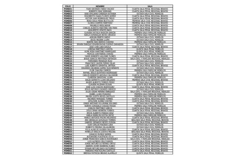 Segunda Sala Penal Regional en Distrito Bravos. Dirigida a mujeres que no prestan sus servicios en el Poder Judicial del Estado (para aspirante externa).