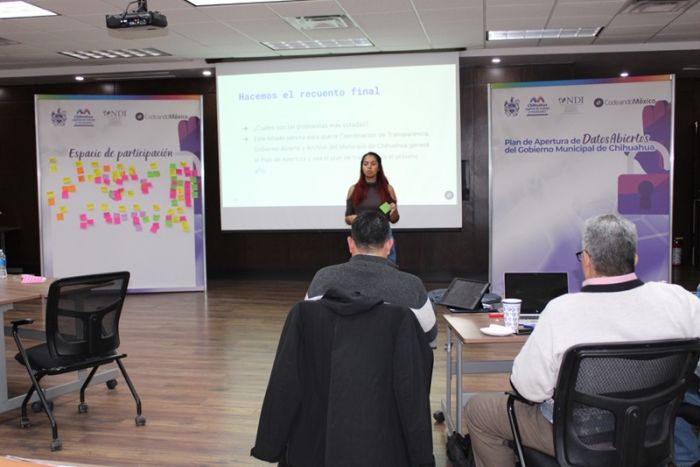Chihuahua, Chih.- La Coordinación de Transparencia, Gobierno Abierto y Archivos, en apoyo con el Instituto Nacional Demócrata (NDI) y Codeando México, por medio de mesas de trabajo concluyeron el proceso de análisis para la creación y desarrollo de la “Política de Datos Abiertos del Gobierno Municipal de Chihuahua”.