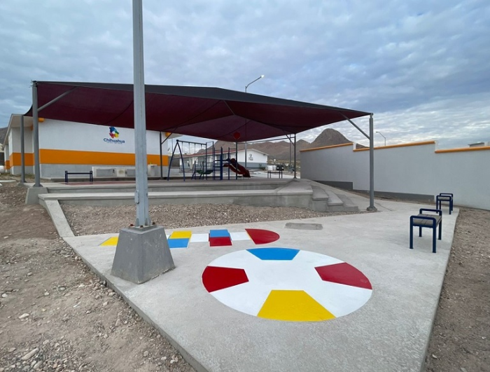 Chihuahua. -El Gobierno Municipal, a través de la Dirección de Obras Publicas finalizó la construcción de espacios recreativos del Jardín de Niños "Kurowi", ubicado en la calle Nilo Blanco en la colonia Paseo de los Leones en beneficio de más de 80 niñas y niños.