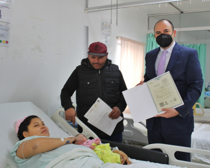 El director General de Registro Civil, Rafael Alejandro Corral Valverde, realizó el asentamiento del acta de nacimiento de la bebé, que fue entregada sin costo para la familia junto con la Clave Única de Registro de Población (CURP). Ambos fueron impresos en el módulo que tiene la dependencia en el nosocomio.