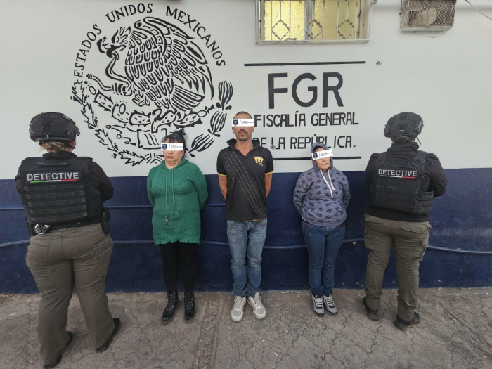 Al proceder con la revisión del vehículo Toyota PRIMZ de color azul, con placas de Nuevo México USA, los agentes detectaron que las 3 personas mantenían la posesión de un arma de fuego calibre 9mm, modelo 995. Asimismo, se localizó un envoltorio transparente con narcóticos, hechos por los que los ahora detenidos fueron puestos a disposición de la Fiscalía General de la República (FGR).