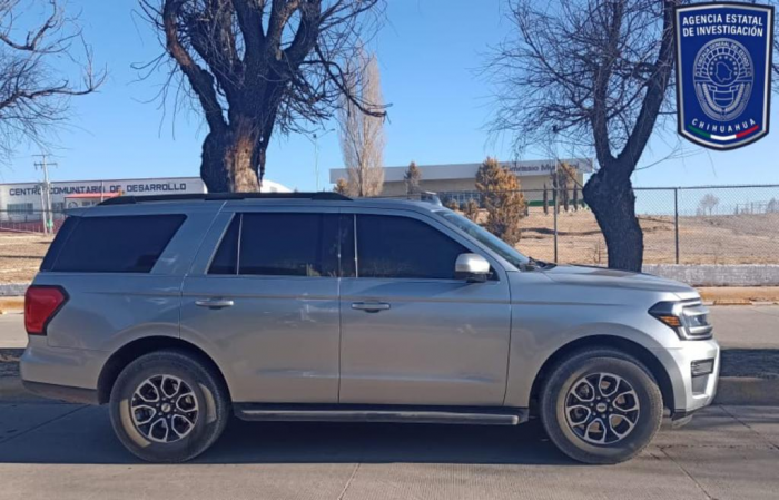 Chihuahua, Chih.- Elementos de la Agencia Estatal de Investigación (AEI) adscritos a la Fiscalia de Distrito Zona Sur en el municipio de Guachochi, recuperaron una camioneta de la marca Ford, línea Expedition, modelo 2022, de color gris, que contaba con reporte de robo interpuesto el 14 de diciembre de 2022, en Las Vegas, Nevada.El pasado viernes 19 de enero, en la calle Gustavo Talamantes, de la colonia Iguza, de la ciudad de Guachochi, los agentes revisaron los números de serie del citado vehículo y conocieron que fue robada en los Estados Unidos.
