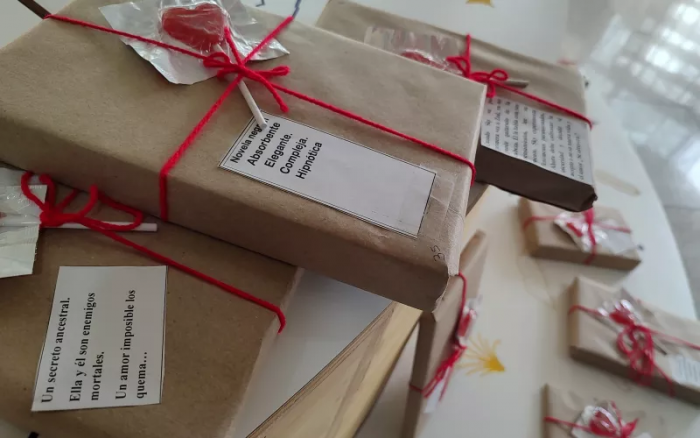 La actividad se realiza en conmemoración del Día del Amor y la Amistad, y consta de libros envueltos en papel que muestran una pequeña descripción sobre la temática, para que solo al retirarle la envoltura, sea visible el título de la obra.