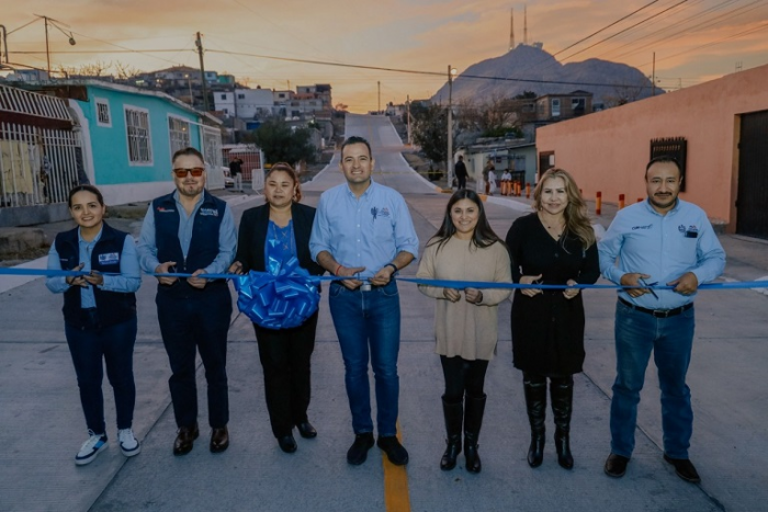 Chihuahua. -Vecinos de la colonia 2 de Octubre fueron testigos del corte del listón que el alcalde Marco Bonilla y la promovente de obra, Rosa Isela Ferrales, hicieron en las calles Irwin Flores, Oscar Collazo, Cesar Antonio, Mártires de Chicago y Hermanos Barragán, para inaugurar su pavimentación con concreto hidráulico, gracias al Presupuesto Participativo 2022 que unió a toda la comunidad para lograr un sueño de más de 40 años.